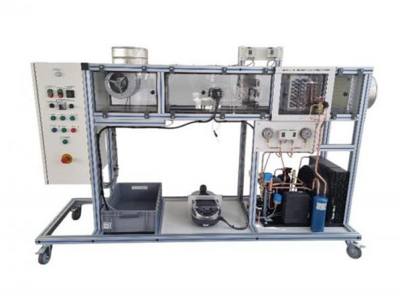 Le banc CRA525 permet l’étude d’une centrale de traitement d’air industrielle de type simple flux (un ventilateur). Elle comporte les éléments classiques d’un réseau de traitement, à savoir : des filtres, une batterie froide, un groupe frigorifique, un humidificateur, une batterie chaude, un ventilateur de soufflage.