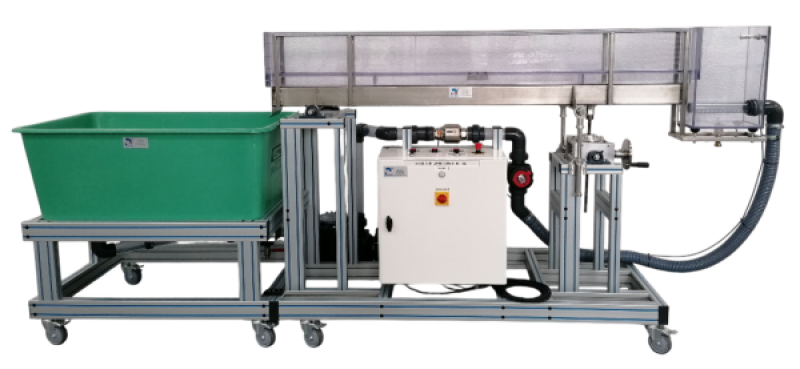 The BCI 050 bench allows the study of flows in open channel. Water is pumped into a water reserve and sent through the open channel.
